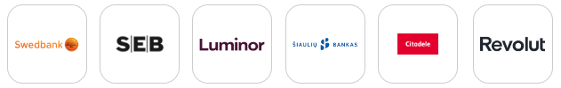 Saugiai atlikite apmokėjimą per jūsų pasirinktą banką:
